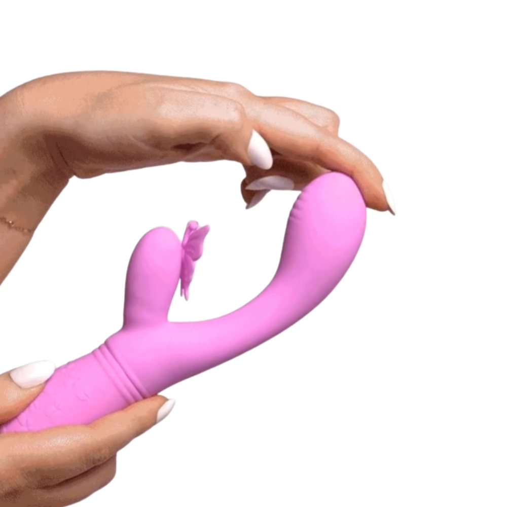 A silicone dual-action vibrator that'll make your fantasies take flight! The curvy shaft and butterfly-shaped teaser vibrate together with your choice of 10 thrilling functions. Add a little G-spot stimulation to your flight of fancy by angling the textured tip against your pleasure point. Or use it to tease deeper hotspots while the butterfly wings flutter against your clitoris! However you decide to explore your own secret garden, you're sure to reach new heights of pleasure.